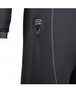 Manchon visage aminci (-2 mm) sur la monopièce col avec une zone autour du visage sans couture pour plus de confort, d'étanchéité et de durabilité. Col lisse intérieur pour plus d'étanchéité et fermeture finement ajustable grâce à un scratch élastique et un grip non agressif qui ne s'agrippe pas sur le jersey et les coutures. Double manchon poignet et cheville zippé avec manchon intérieur à retourner, en jersey intérieur et néoprène lisse extérieur. L'extrémité de la couture d'assemblage des manchons intérieurs est coupée à 45° pour plus d'élasticité et de solidité lors de l'habillage.